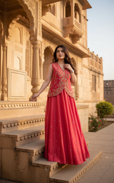 • Inclusions: The set includes the fully stitched Lehenga, the stitched Koti (Blouse), and the embroidered Shrug.