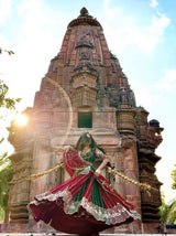 Unveil the splendor of the royal courts with The Rajwada. A true Darbari Poshak, this ensemble is a majestic tribute to Rajasthani heritage. Crafted from premium Fox Georgette, it features the classic regal palette of deep crimson and emerald green, designed in a vertical panel style that exudes authority and grace. Heavily embellished with "Coding Sequence Work," this fully stitched set is ready to make you the protagonist of your own royal tale.