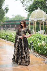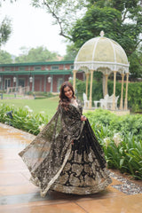 Zaitoon Zari Deep Olive Green Lehenga Set